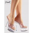 Sandália de stripper com uma plataforma de cerca de 5cm de altura e salto de 15cm.