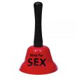Sineta em metal vermelho com a inscrição em preto "Ring for Sex" (Tocar para Sexo).