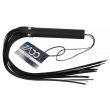 Chicote de tiras em couro genuíno com cabo de madeira forrado e pulseira.