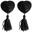 Graças à fita auto-adesiva, são fáceis de colocar e retirar. Têm a forma de coração, vários brilhantes e uma franja no centro.