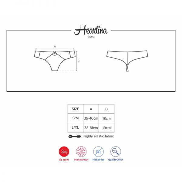 Feito em renda elástica, com bordado floral e pendentes em forma de coração com laços a rematar.