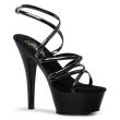 Sensuais sandálias pretas de plataforma em PVC e salto alto.