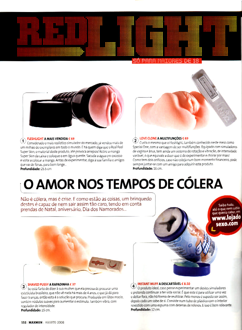 Reportagem Maxmen 2008-08-05 A conhecida revista para homens Maxmen esteve na Loja do Sexo a efectuar uma reportagem. Em grande destaque a Fleshlight, a última grande novidade do mercado erótico lançada em Portugal pela Loja do Sexo.