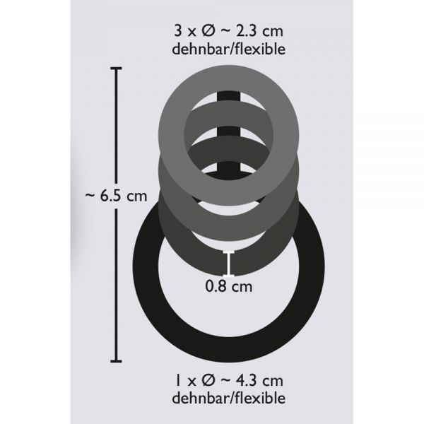 Com sua superfície suave como seda feita de silicone médico, o Black & Silver coloca-te em um êxtase sensual assim que o coloca. O anel se estende bem e, portanto, cabe em todos os tamanhos, apenas para acomodar e dar prazer ao seu pênis.
