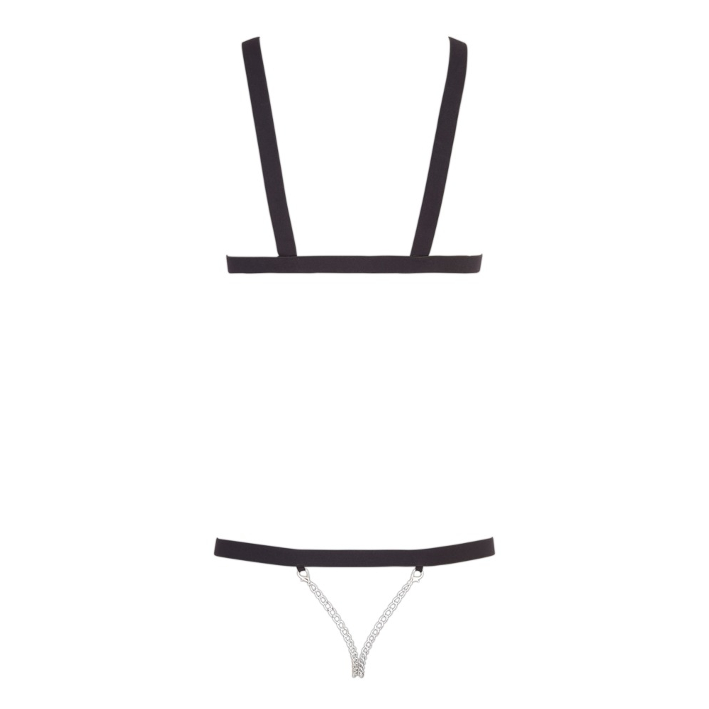 Venda é ajustável atrás e maleável. Dimensões: - Comprimento: 67cm; - Largura: 9cm. Material: Couro sintético, PVC e metal. Esta máscara de meia de renda preta elegante e confortável se ajusta perfeitamente à sua cabeça. O tecido elástico é muito fino, assim consegues respirar e ver através dela. Poderá usar esta máscara, por exemplo, em uma festa fetichista ou para ficar irreconhecível durante um encontro às cegas. Além disso, é muito adequado para iniciantes em jogos de bondage. Uma máscara proporciona uma certa excitação sexual e o bom dessa máscara é que a outra pessoa não consegue ver seu rosto, gostes ou não. Confortável de usar, sempre ajustado, material macio, para uso BDSM. Tamanho único. Material: Renda. Body de correias em couro com ajuste personalizado ao corpo através de fivelas. Inclui correia removível com anel metálico para o pénis / testículos.