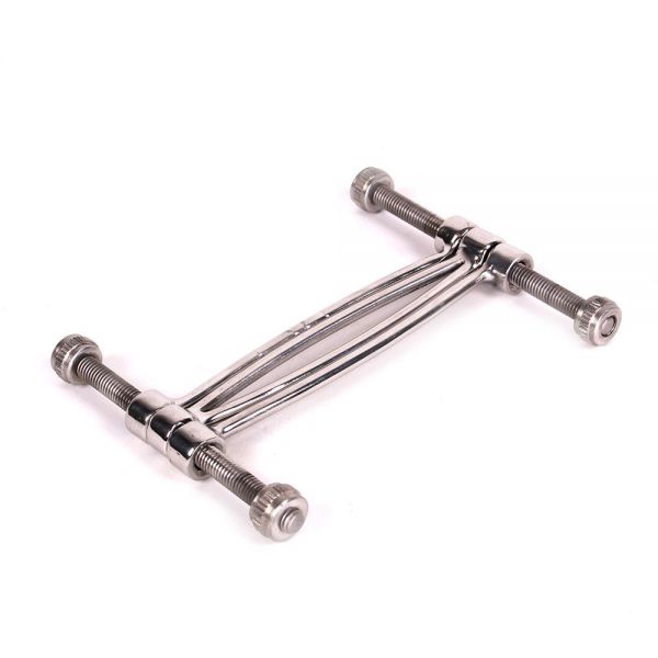 O ajuste ao corpo é perfeito por meio de fechos em fivela. O gancho em aço tem um comprimento de 35 cm e termina em uma esfera de alumínio desenroscável (3 cm de diâmetro), e é maleável para um encaixe perfeito que seja para uma utilização vaginal ou anal.