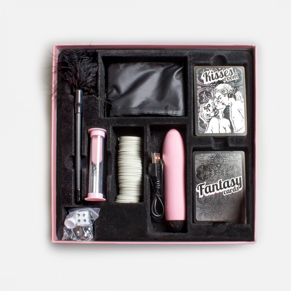 Cada jogador pega uma carta preta “Cartas de Fantasia” e escreve nela a fantasia que gostaria de realizar. Depois, você deve escondê-la em qualquer uma das nove salas temáticas do tabuleiro, entre as demais cartas, sem ser visto pelo outro integrante do casal. Pode ser uma fantasia que acontece quando o jogo termina ou que se realiza outro dia.
