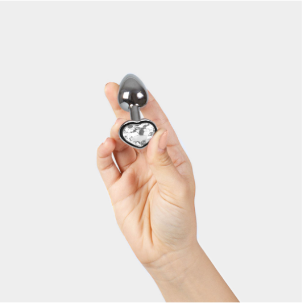 Elegante e sensual plug anal metálico com cristal transparente. É fornecido com uma elegante bolsa de veludo para uma arrumação discreta.