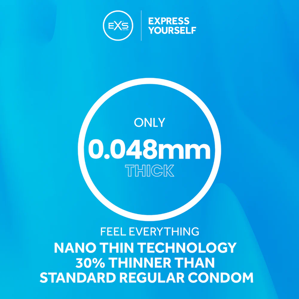 Quantidade: 12 unidades. Enquanto a maioria dos preservativos tẽm pelo menos 0.065 milímetros de espessura, o novo EXS Air Thin revoluciona o mercado com uma espessura de apenas 0,045 milímetros.
