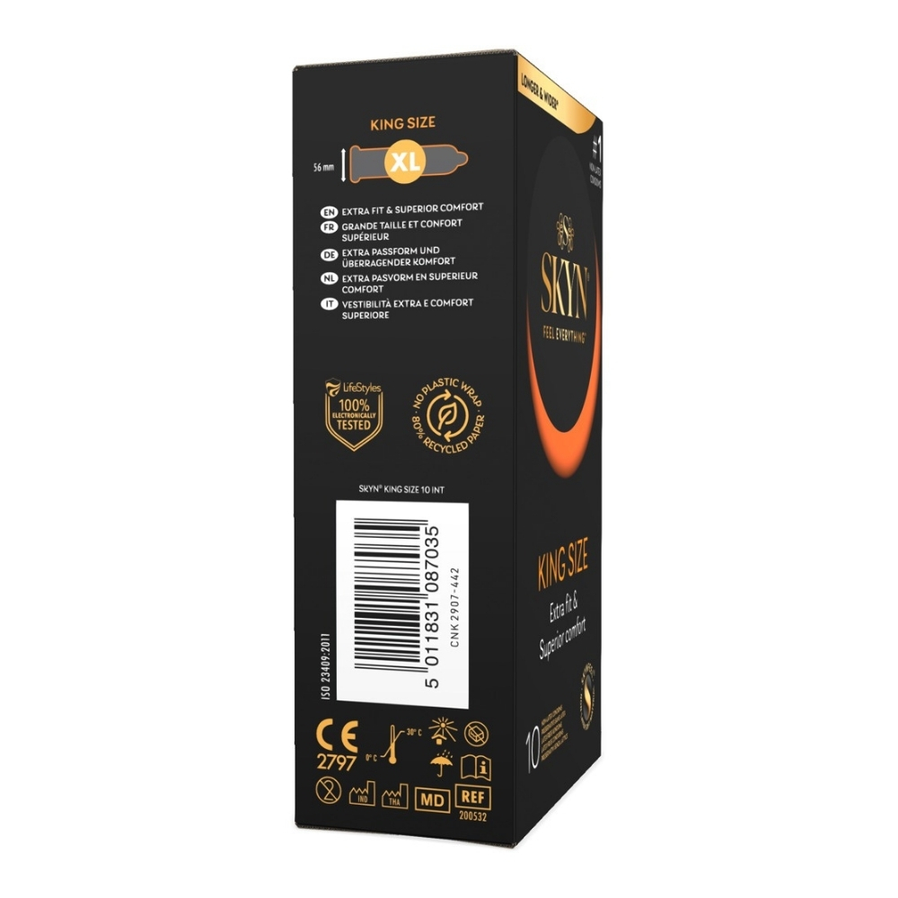 Esta nova geração de preservativos é feita de Skynfeel™, um material sem látex tecnologicamente avançado, comprovado por aumentar a estimulação. É tão macio e confortável que mal notará estar a usá-lo, permitindo que ambos sintam tudo.