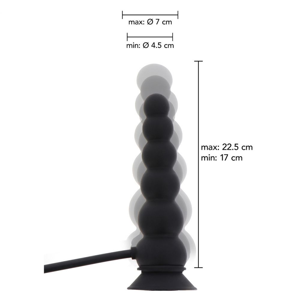 Design apresenta um plug com formas onduladas e uma cabeça afunilada, uma bomba fácil de apertar e uma válvula de libertação rápida. Dimensões do plug: - Comprimento mínimo: 8 cm - Comprimento máximo: 9,5 cm - Diâmetro mínimo: 2,5 cm - Diâmetro máximo: 6 cm Material: Silicone Extreme apresenta uma coleção única de plugs e dildos anais insufláveis, especialmente desenhados para aqueles que querem explorar os limites do seu prazer.
