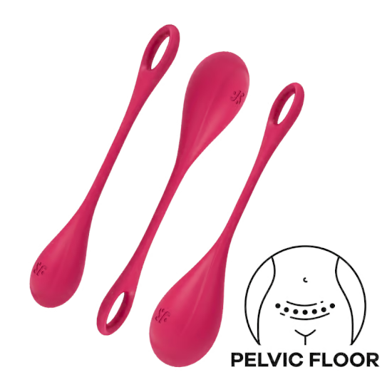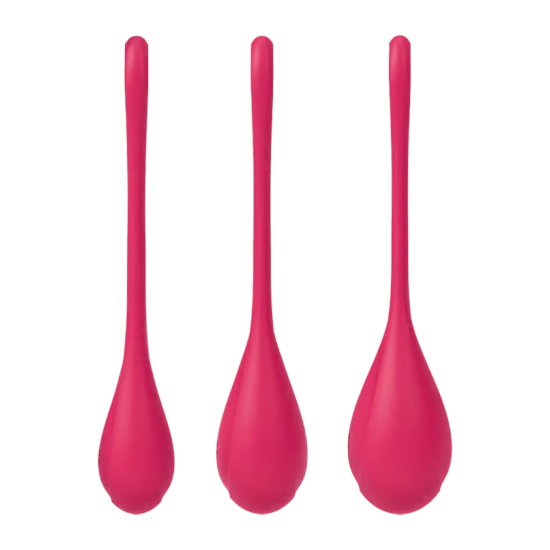 Conjunto de treino do solo pélvico para orgasmos mais intensos. Este conjunto de iniciação inclui 3 bolas com pesos variáveis para apoiar um treino gradual.
