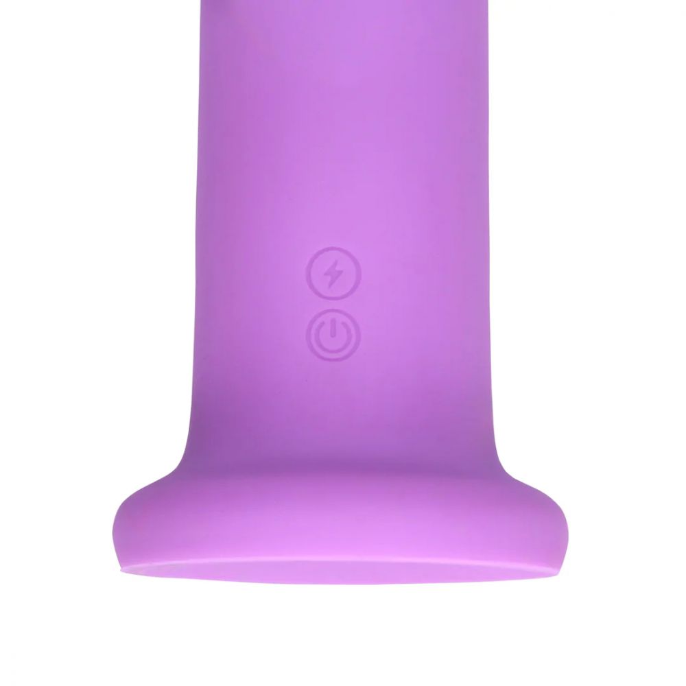 Este vibrador apresenta um corpo elegante com alguma textura e ainda inclui a função de rotação 360º para massajar o seu interiror.