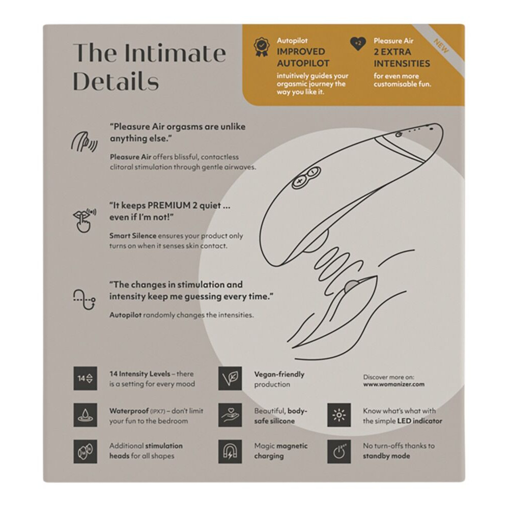 Ao contrário dos estimuladores clitorianos comuns que funcionam através de vibração e contacto, o Womanizer funciona através da revolucionária tecnologia de ar de prazer "Pleasure Air" com impulsos de sucção e ondas de pressão.