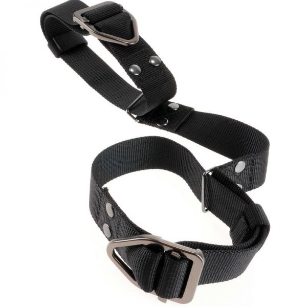 As algemas tẽm costuras elegantes, são seguras e têm seis orifícios para ajustar o comprimento, adaptam-se a todos os tamanhos. Prendem ao anel central por mosquetão individualmente, o que permite a combinação com outros acessórios de restrição ou imobilização.