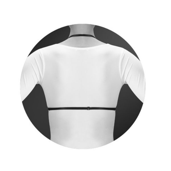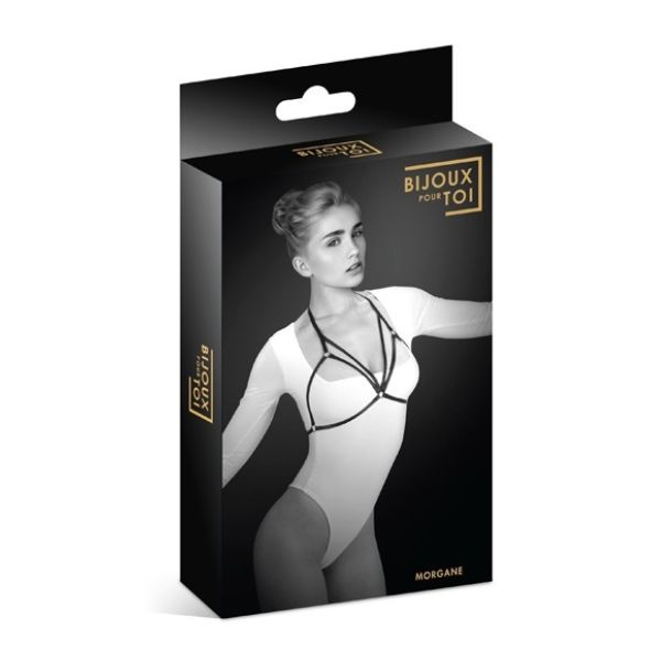 Material: 90% poliamida, 10% elastano. Realce a sua sensualidade e estilo com este arnês peitoral, produzido em couro preto e com correntes prateadas que adornam o seu peito. Combine-o com o cinto da mesma marca para um look de cortar a respiração.