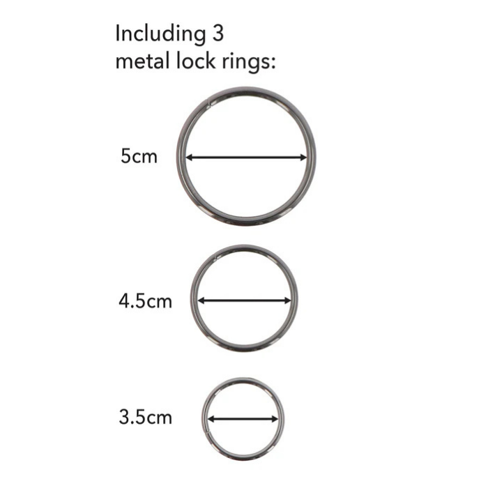 Inclui 3 anéis em metal de diferentes tamanhos.