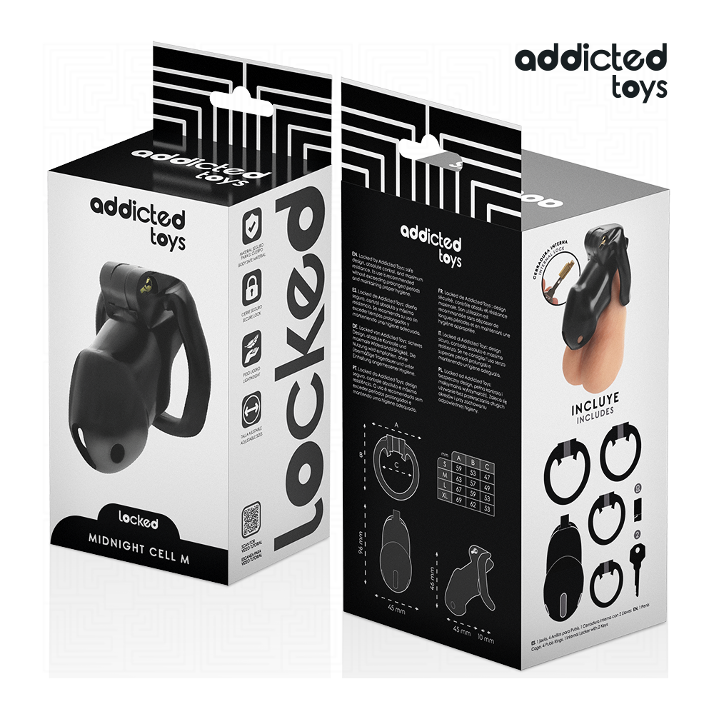 Teste o seu prazer com o cinto de castidade metálico Iron Cell. Apresenta um design único, resistente e seguro, para uma utilização confortável. Coloque o anel na base do pénis e adicione a gaiola peniana; para conectar, utilize o cadeado.