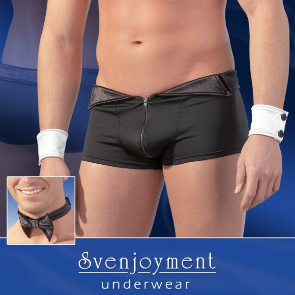 Equipados com swell function, uma bolsa frontal com um orificio que sobe e realça os genitais. A bolsa está decorada com tachas, e está prende aos boxers com pequenos ganchos de pressão de cada lado.
