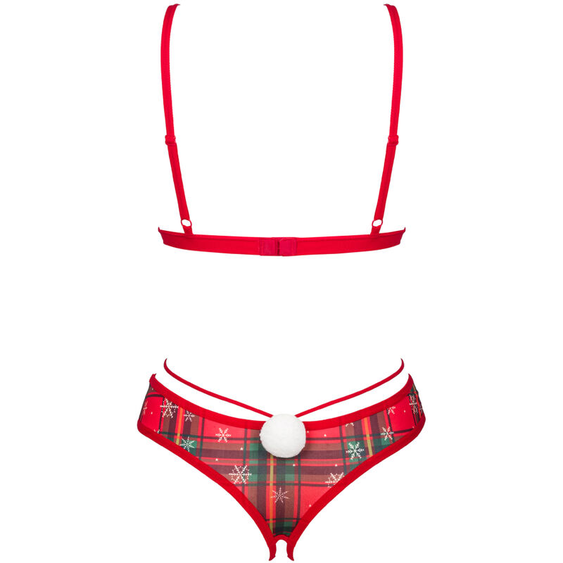 Com um design audaz e atrevido, este conjunto produzido em vinil com pormenores em pelo é perfeito para quem deseja dar um toque maroto ao seu Natal.