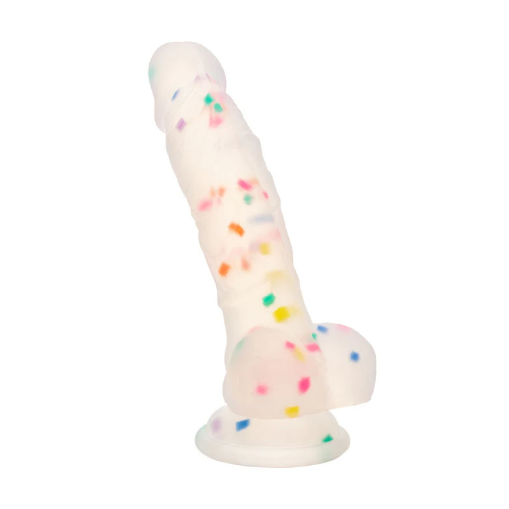 Lindo dildo com corações e sensação firme e realista. Possui design extremamente flexível e base de ventosa resistente. Compatível com arnês.