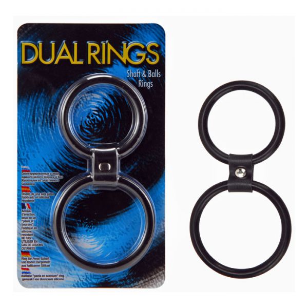 Um anel em couro genuíno, com botões de pressão para o perfeito ajuste a cada indivíduo, para colocar ao redor do escroto, destina-se a aumentar a sensibilidade e intensificar o orgasmo; um anel em borracha para colocar na base do pénis para prolongar e tornar mais forte a erecção.