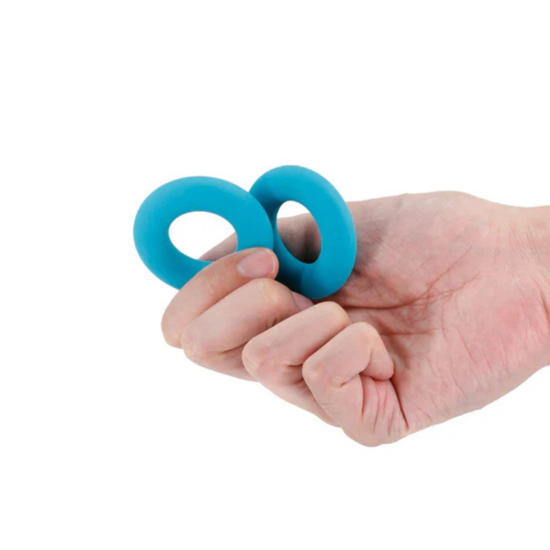 Pack com dois anéis penianos elásticos quadrangulares. As suas posições no pénis podem ser costumizáveis.