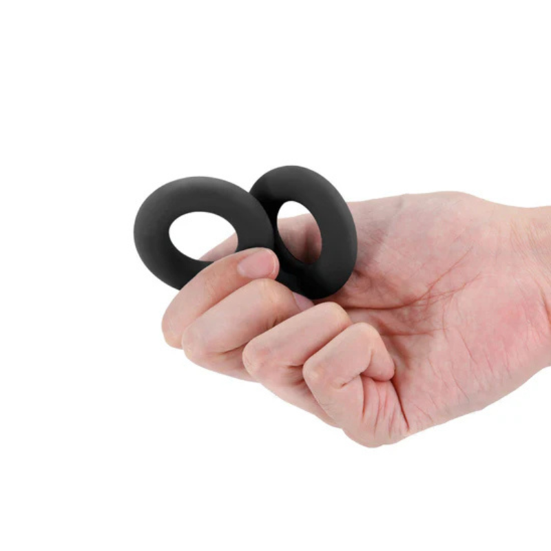Anéis de silicone super elásticos para pénis e testículos em três tamanhos (30mm, 35mm, 40mm).