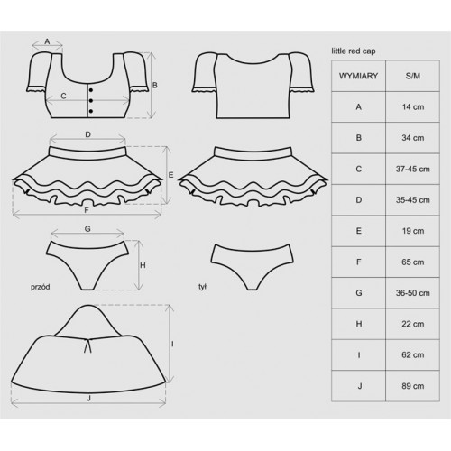 Inclui: Top, saia, meias, elásticos para o cabelo, tanga.