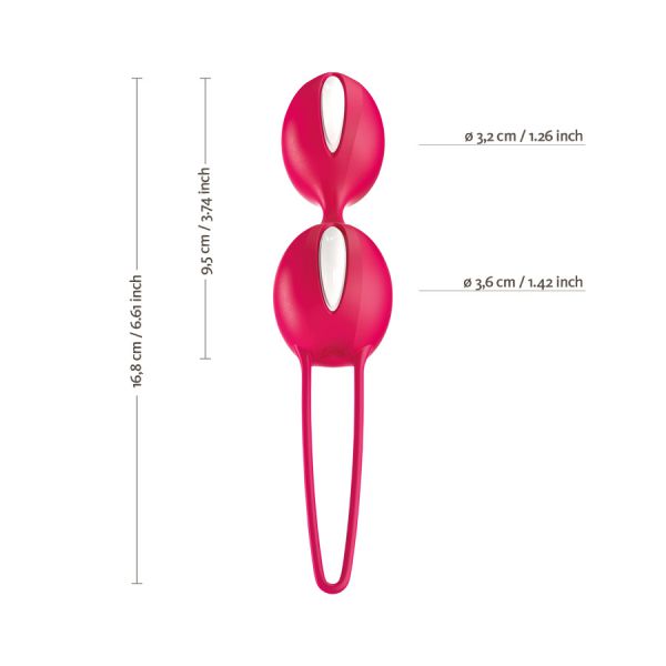 29mm de diâmentro e 37g de peso, para um encaixe confortável e perfeito para todas as mulheres, e podem ser usadas uma de cada vez ou juntas com o cinto de silicone que permite a escolha do prazer sob medida.