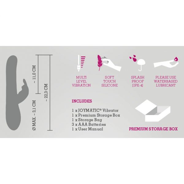 » Vibradores » Rabbit | | Joymatic - Vibrador Rabbit com Biofeedback | | |  | | | | |  | | A Lojadosexo.com sugere: | Se você é o tipo de pessoa que pensa que dois orgasmos são melhores que um, prepare-se para Soraya 2, o vibrador rabbit (de dupla ação) mais luxuoso do mundo, que oferece estimulação dupla otimizada para orgasmo do clitóris e do ponto G.