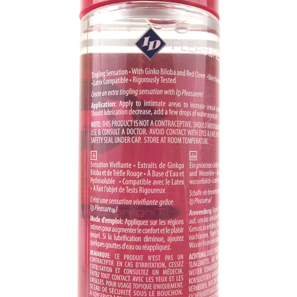 Além das excelentes propriedades de lubrificação de ID Glide, os ingredientes naturais Ginko Biloba e Red Clover contidos na fórmula de ID Pleasure activam circulação sanguínea nos genitais favorecendo erecções mais duras no homem e mais excitação na mulher.
