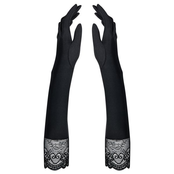 A combinação de malha transparente e miçangas intrigantes se reúne na forma de luvas extremamente sensuais.