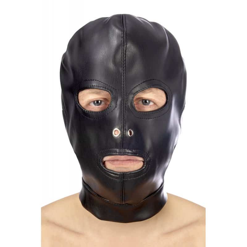 Dê aos teus jogos BDSM uma nova dimensão! Material: Spandex Confortável máscara preta se encaixa perfeitamente em sua cabeça. Possui tecido elástico fino o suficiente para manter a respiração pelo nariz. Confortável de usar, sempre se encaixa, material macio, para uso BDSM. Material: Spandex Máscara em couro com 2 aberturas totalmente ajustáveis na traseira da cabeça. Possui uma abertura no nariz e boca e venda nos olhos.
