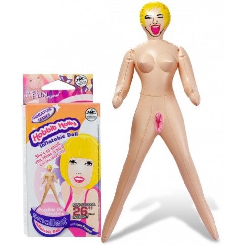 Mini boneca insuflável com 66cm de comprimento.