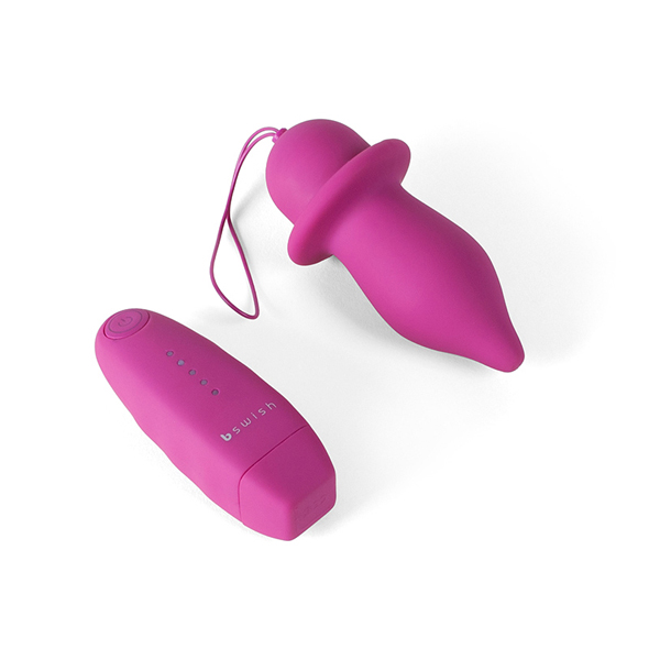 Blister com 4 unidades. Plug anal com vibração e controlo remoto produzido 100% em silicone.