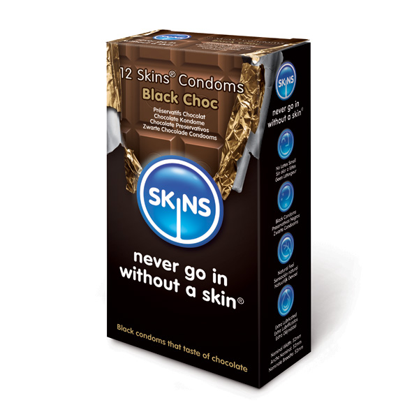 Preservativos Skins Preto Aroma Chocolate 12 un.