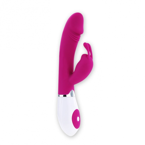 Com um toque macio e suave, faz as delicias com a ponta flexível curvada para uma estimulação do ponto G, conjugada em simultâneo por uma massagem clitoriana pela extremidade menor.