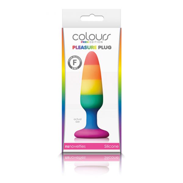 Plug edição Pride Edition, com decoração arco-íris. Produzido em silicone platinado liso e acetinado. A forma clássica ergonómica que oferece uma utilização fácil e segura. Base de sucção para utilização mãos livres.