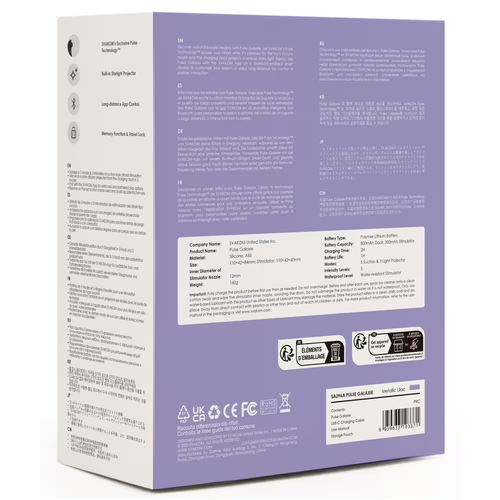 A revolucionária tecnologia de ar de prazer "Pleasure Air" do pulsador deitado estimula o clitóris sem contato sem a necessidade de se acostumar com a sensação, graças aos impulsos de sucção e estimulação dos 14 níveis de intensidade. Os níveis de intensidade podem ser aumentados ou diminuídos com o pressionar de um botão.