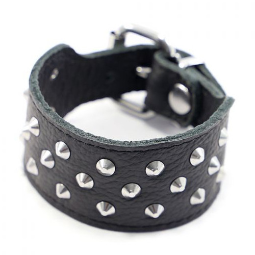 Material: Poliuretano, metal. Esta pulseira larga em couro genuíno é o acessório perfeito para completar a sua roupa fetiche.