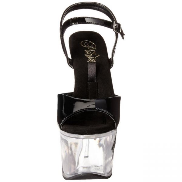 Sandália de plataforma de dimensões extra generosas. Especialmente concebida para pole-dance e strip-tease. Palmilha e plataforma pretas e alças transparente para realçar o mais importante, o seu corpo. Esta sandália apresenta salto e plataforma de dimensões generosas. As suas pernas irão ficar longas, bem torneadas e espectacularmente sexys. Além do efeito estético os saltos exercitam os gémeos da perna, e o peso dos sapatos irá ajudar a conseguir uma espargata mais profunda em movimentos como Chopper/Helicopter e Jade Split e os centimetros extra significam que pode começar os movimentos/evoluções mais acima no varão e continuar a rotação por mais tempo. Produzidas em acrílico e PVC de qualidade extra, com bons acabamentos, sola anti-deslizante, interior almofadado, correia ao tornozelo com ajuste por fivela, são sandálias de plataforma que oferecem todo o conforto e segurança para as manobras mais avançadas no varão. Um item verdadeiramente essêncial no guarda-roupa de qualquer performer, profissional ou aficionada. Dimensões: Salto com 20.3cm de altura; Plataforma com 10cm de altura; Cuidado com as falsificações e cópias. Este é um item 100% genuíno. Gotas afrodisíacas exclusivamente para mulheres.