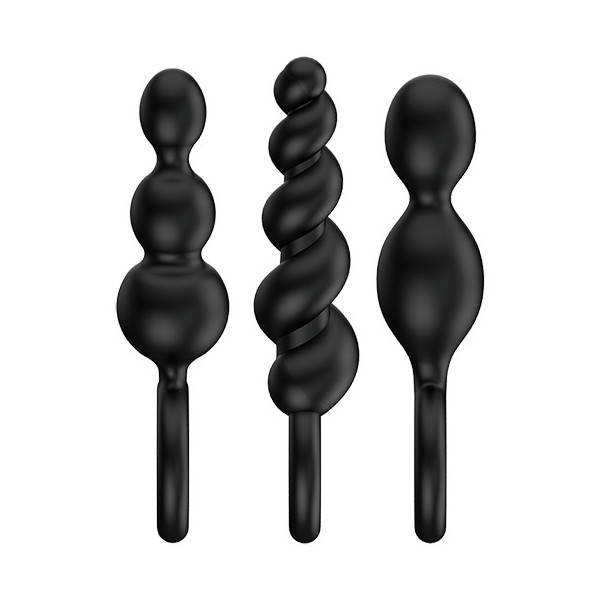 Os 3 designs impressionam pela sua superfície lisa e flexível em silicone macio, higiénico e inócuo para o corpo. O anel de retenção muito prático simplifica a inserção deste acessório anal e garante uma utilização sem complicações. Além disso, o anel funciona como uma base larga que impede a inserção completa dos plugs anais, para que se possa dedicar ao treino anal sem preocupações.