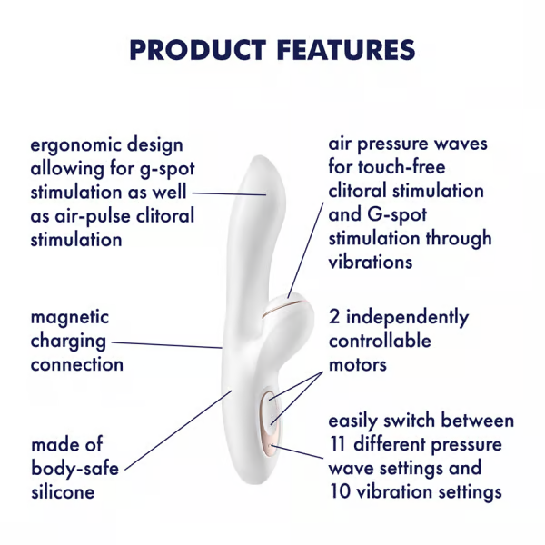 É tempo de obter o máximo em sensação. Este vibrador rabbit da família Satisfyer, é um 2 em 1, estimula o clitóris com ondas de pressão sem contacto, e amplia a sensação por meio de massagem adicional do ponto G.