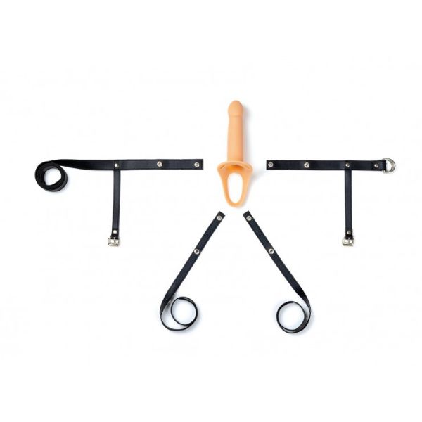 O arnês elástico adapta-se a quase todos os tamanhos e o dildo, devido ao seu tamanho, saliências e curvatura, alcança os pontos mais importantes.
