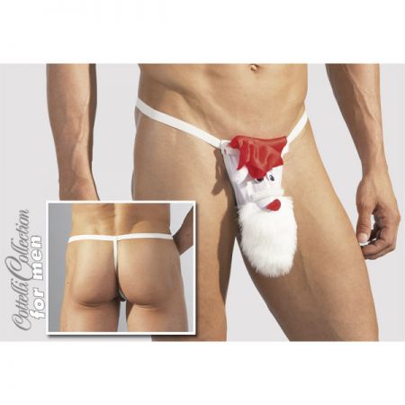 String para homem com frente em forma de Pai Natal e chip musical "Jingle Bells".