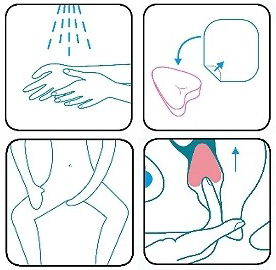 Poderá utilizar um pouco de lubrificante ou humedecer o tampão em água limpa para facilitar a aplicação. A posição ideal será sentada ou agachada. Esprema o tampão entre o polegar e o indicador, a ponta estreita em forma de seta, com as duas asas laterais formam um apoio para introduzir o tampão na posição correta. Abra com a outra mão os lábios vaginais e empurre o tampão com o dedo indicador tão profundo quanto possível, até tocar no colo do útero.