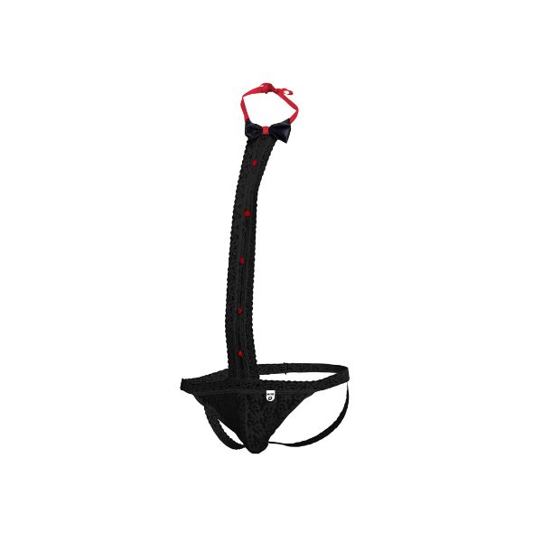Com cobertura mínima na parte de trás, uma bolsa respirável na frente suporta o pénis sem restringir o apelo sexual.
