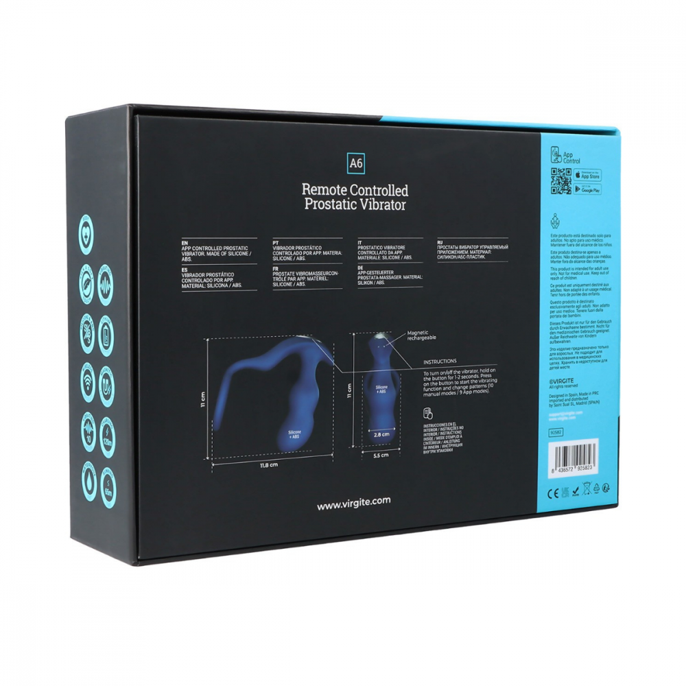 Anatómico e com a ponta ajustável para inserção fácil e estimulação perfeita do Ponto P masculino. Os dois motores oferecem vibrações muito intensas, com modos de vibração ilimitados totalmente configuráveis.
