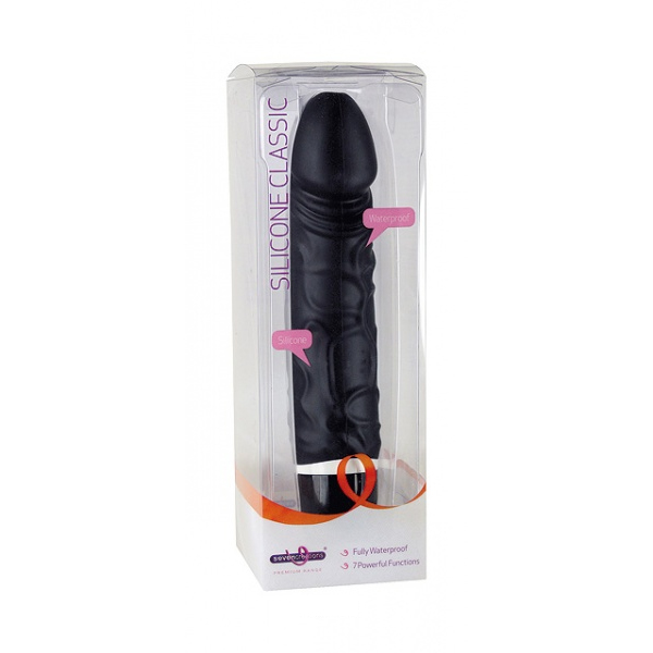Vibrador flexível em silicone. Superfície com saliências suaves a imitar as veias de um pénis.